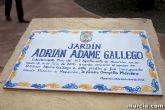 Esta tarde Mazarrón ha rendido un caluroso homenaje a Adrián Adame Gallego dedicándole el jardín donde hace un año el joven fue agradecido por arma de fuego, falleciendo tres días más tarde. El Alcalde de Mazarrón, Ginés Campillo, junto a los padres de Adrián, Máximo Adame y Toñi Gallego, han descubierto una placa con su nombre ante decenas de familiares, amigos y un gran número de miembros de la corporación municipal que han arropado a la familia durante este acto lleno de emoción contenida.