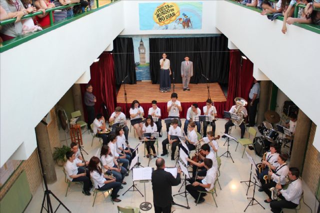 Toda la comunidad educativa del C.E.I.P. "La Aceña" se ha involucrado en la preparación de la obra, desde la confección de los nuevos telones, hasta el bonito y elaborado decorado pintado por Isabel Iborra, profesora del centro, pasando por la cuidada selección del vestuario de época tanto de actores como de narradores; lo que dio como resultado una magnífica puesta en escena. Un éxito en el que también ha colaborado el Ayuntamiento de Mazarrón. La Asociación Musical y el colegio "la Aceña" se muestran satisfechos con esta experiencia de colaboración que, aunque larga y laboriosa, ha conseguido un resultado muy satisfactorio, y anuncian la posibilidad de una segunda representación de "La vuelta el mundo en 80 días" para septiembre.
