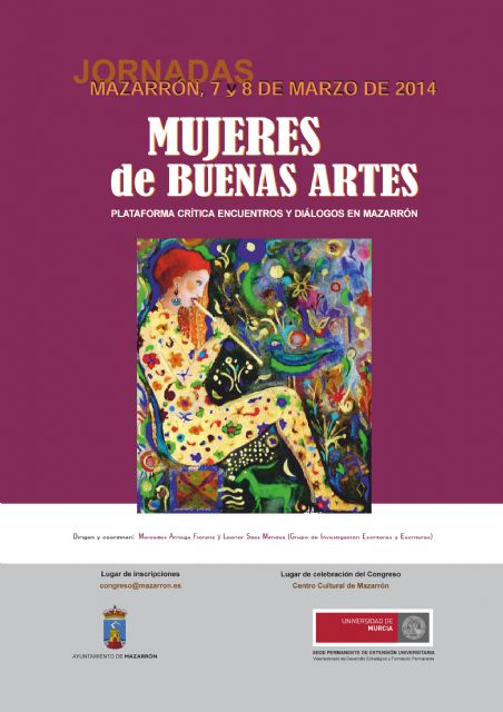 Ayer se abrió el plazo de inscripción para las jornadas 'Mujeres de Bellas Artes' que se celebrarán en el salón de actos del Centro Cultural de Mazarrón los días 7 y 8 de marzo, gracias a la Sede Permanente de Extensión Universitaria de la Universidad de Murcia (UMU) en Mazarrón, que organiza la cita junto al Ayuntamiento. El programa está recogido en la web municipal www.mazarron.es, donde además se puede acudir para formalizar la inscripción.