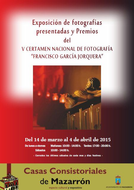 Asimismo, la Cofradía del Santo Sepulcro organiza una exposición fotográfica del colectivo F-20, inaugurada también el pasado sábado en las Casas Consistoriales de Mazarrón. La muestra podrá verse hasta el 4 de abril de lunes a viernes de 10 a 14 horas y de 17 a 20 horas y sábados de 10 a 14 horas, excepto el sábado 28 de marzo que permanecerá cerrado.