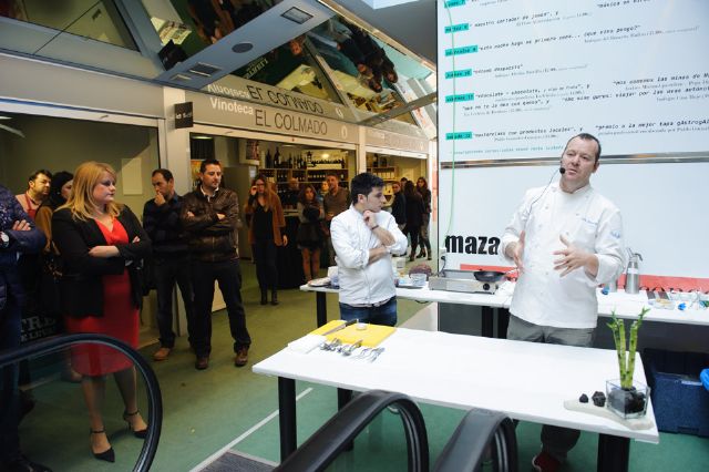 El jefe de cocina del Restaurante La Cabaña-Buenavista, Pablo González-Conejero, ofreció este sábado una clase maestra en el mercado gastronómico gAstrogAllo 2.0. El chef con una Estrella Michelín preparó once aperitivos típicos de su establecimiento y dos platos con productos locales de la bahía de Mazarrón. González-Conejero visitó así por segunda vez un mercado que inauguró él mismo el pasado 5 de diciembre. El reconocido cocinero murciano valoró la organización del evento, del que confirmó que le han llegado comentarios muy positivos de profesionales del sector.