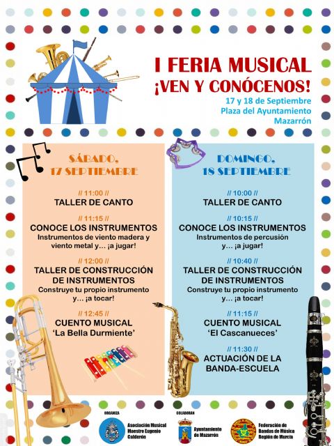 Con la idea de promocionar la música y de mostrar las actividades que se desarrollan en la Asociación Musical, el sábado 17 de septiembre dará comienzo a las 11:00 horas la "I Feria Musical" con un taller de canto. A las 11:15 horas, se divulgará, mediante audiciones, el conocimiento de los instrumentos de viento madera y viento metal. A las 12:00 tendrá lugar un taller de construcción de pequeños instrumentos a través de materiales reciclados. Finalizarán las actividades del sábado con el cuento musical "La Bella Durmiente".