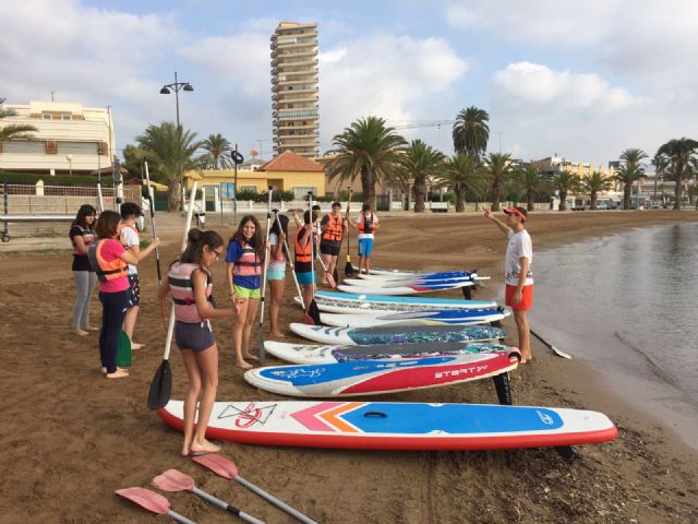 En la mañana de este lunes los alumnos del IES Domingo Valdivieso han asistido a un taller de nudos marineros y después, divididos en grupos, han salido al agua para remar con kayak, hacer paddle sur y navegar con barco de vela. La experiencia ha sido muy gratificante para todos ellos.