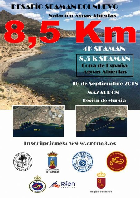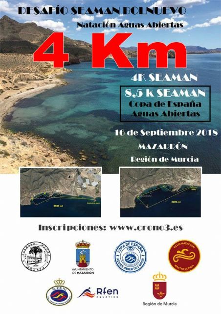 El próximo 16 de septiembre Bolnuevo y sus calas serán escenario de un nuevo 'Desafío Seaman' que atraerá a más de un centenar de nadadores de media y larga distancia de toda España. Se realizarán dos pruebas de 4 y 8,5 kilómetros, puntuable esta última para la Copa de España. Los nadadores recorrerán sendos circuitos entre las calas de Bolnuevo, con la Isla de Cueva Lobos como referente, la playa de Bolnuevo y de Playa Grande.