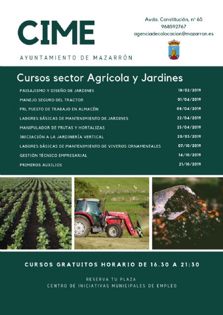 El Centro de Iniciativas Municipales de Empleo (CIME) acogerá a lo lardo de este año numerosos cursos para formar a profesionales del sector agrario y jardines en colaboración con el CIFEA de Lorca.