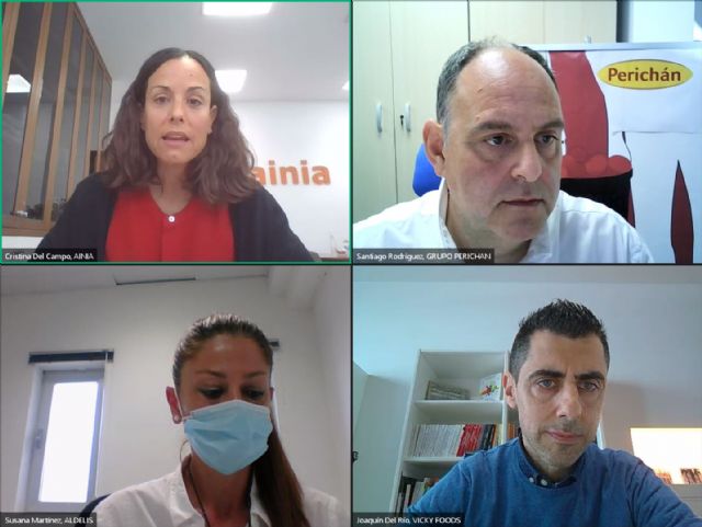 Moderada por la directora general de AINIA, Cristina del Campo, han intervenido la directora de Innovación de Aldelís, Susana Martínez; el director Financiero del Grupo Perichán, Santiago Rodríguez, y el director de innovación de Vicky Foods, Joaquín del Río. Empresas pertenecientes a AINIA Network.