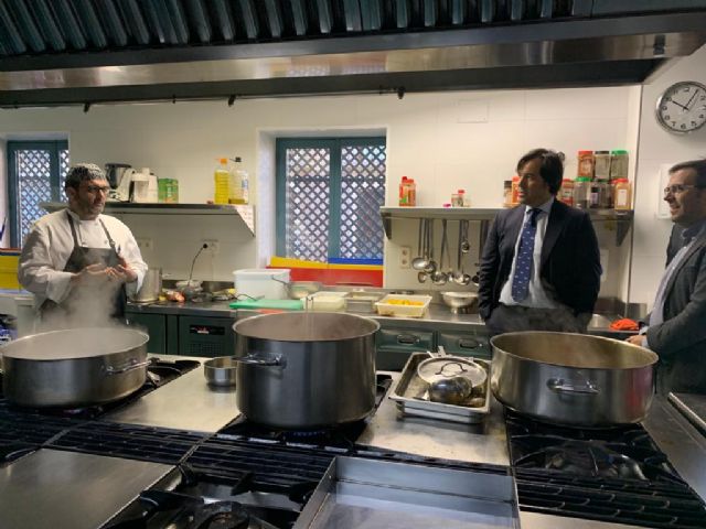 El consejero de Empleo, Investigación y Universidades, Miguel Motas, visitó hoy las instalaciones de la escuela de Hostelería 'eh!', donde expresó su agradecimiento y admiración por la labor que Cáritas realiza en beneficio de los más necesitados, y mostró su satisfacción porque "la inserción de los alumnos de un curso de formación en hostelería y turismo es actualmente del 50,6 por ciento. Se trata de un dato muy positivo, que está por encima del 42,2 por ciento de inserción en el global de los cursos de todas las familias profesionales".