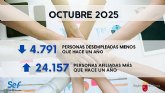 Por sectores, el desempleo descendió en construcción, con 101 personas menos, así como en industria, donde se registró una reducción de 64 personas desempleadas. Por su parte, agricultura mantuvo el mismo número de personas desempleadas con las que cerró septiembre, mientras que en servicios aumentó en 724.